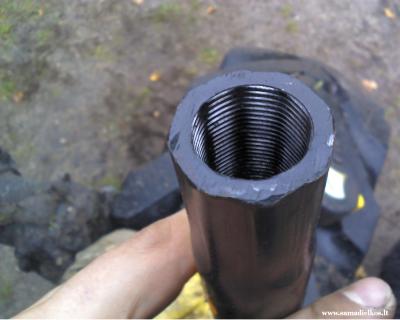profas: is pradziu ir man kilo tokia mintis, bet kiek esu mates sriegis su prasivalymo tarpeliu buna tik isorinis ir tai tik dalis ilgio. Cia greiciausiai tooks sriegio formavimo technologinis procesas, kad presavimo budu ant sablono. Zodziu turbut reiks problema sprest uzsukant placias kontraverzles, padaryt suvedima ir det su svarke kontraverzles prie traukes.