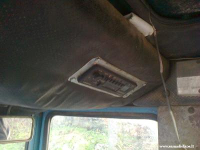 Pajungta i kuro lygio matuoklio srovs, nes matuoklis neveikia, prie radijo saugiklis ir prietais skydelyje dar vienas, tai gana saugu manau. Buvau galvojs vidin anten dti, bet girdjau prastai traukia, o i ant stogo visai neblogai. Garsiakalbiai leisti lubas (kas turi UK kabin supras), juk stog sudjus paliks atviri garsiakalbiai lauk ilind.