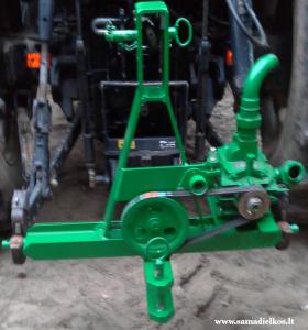 Čekoslovakiškas,našumas 665 litrai į minutę,prie 1100 apsisukimų,skriemuliai,didysis 18,mažasis 7,5cm,skirtumas 2,4 karto,imant darbinio sūkius,prie maximalių alkūninio apsisukimų 2200,į darbo veleną 1000,prie 1100 alkūninio,darbo veleno 500, 500x2,4=1200 į siurblį,tai sukantis alkūniniui apie 1000,ir bus siurblio apie 1100 į minutę,tiek,kiek ir priklauso.komplektavau tokio principo,del to,kad ūkelyje dvi bačkos reikalingos vakumuot-traukt,srutinė RŽ1,8 ir vandeninė 3 kubų,ganymo sezonu,gyvuliams gerti,juolab,ant 3kubės uždėjus,tektų laukuose su siurbliu palikti,o ten manau ilgai neužsibūtų,paprasčiausia siurblį nufyrintų,del to,va toksai sprendimas gimė,gamint pakabinamą,ant traktoriaus pakabos,o nuo jo,rėmo konstrukcijos,vilkimo kilpą ir kabint ką nori toliau,siurblys lieka ant pakabos.