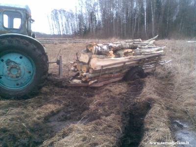 Kaip mune sakai gerai mum tai aisku kad gerai ir is savo misko vezeu ir da vezu is kirtimo nes kai per musu miska su miskoveziu ismyne prasukus tai net iki keliu kai i juos ilipi tai su soraku neina pravaziuot reik keliukas salimais daryt daba tai jiem sakom duokit malku kad vaziuojat pro musu zeme tai ir davie priekaba ir sako eikit kirtiman pasirinkt da daug malku yra kaladziu ir kaip ranka storio pagaliu tai ir vezam.