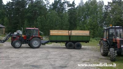 Priekaba paprasta. Lingm po 2 storas juostas pridta, tai jos nejauia to svorio. Rmas sustiprintas. Vaiuojam nedaugiau kaip 20km/h, kad nedegint padang ir viskas gerai. Jos bortai kakada buvo 1,5m padaryti ir ve silos. Tai sustiprino j. Sumainom bortus ir veam grdus.