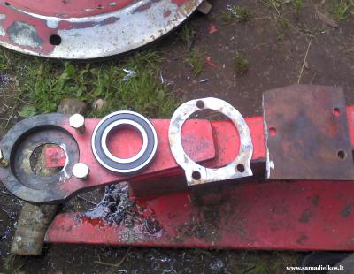siaip dar cia biski perdarytas ir mazuju ivoriu mazgas. Bet ten nera ko fotkint tiesiog vietoj dvieju mazuju plastikiniu ivoriu idetas apie 20 cm ilgio nerudyjancio plieno, saltu valcavimo vamzdukas. Ant jo ir sukinejasi guoliaviete, kuria tempiami dirzai.