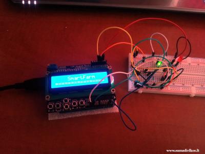 Todėl radau internete, lengviai naudojamą, lengviai programuojamą Arduino UNO mikrovaldiklį (85Lt orginalas lietuvoje, kinietiškas internete ~40Lt). Priedo ėmiau LCD ekraniuką (LCD Shield 16x2), jis iš esmės suderintas su mikrovaldikliu. Na ir paėmiau komplektėli maketavimui, kad pramokčiau. Iš esmės, suprogramavus, surinkus viską ir su visais davikliais, kaina prasidėtų nuo 200Lt.