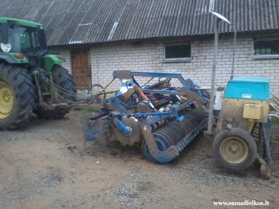 Vienas ukininkas kuhn 4metru sejamaja tampoma pasidare, ratus nuo savaeiges sienapjoves paeme ir gan padoriai gavosi