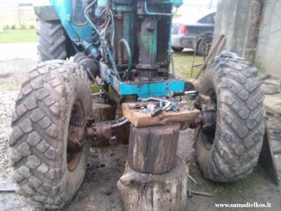 o as tik pasakysiu , kad paprasta portalke vargas kai uzmontuotas pakrovejas , siai dienai keisiu 3 pusasiu pora , nes nusizievina dantraciai , nors tik malkom uzsiema darbo duok dieve savaite per metus , nes yra kam pavaduot . poto purvinese salygose per siauri ratuka smarkiai smenga , norejom pakeist , bet su kaiminu pasnekejom , kuris turi uzdejas platesnius ratus , jog tik pasemes kausa , ijungi tilta ir siek teik pabugsuoja , iskart pusasio nera , tai kaimynas tonini svori ant siknos dejo ir naudojo kaip vientilti .