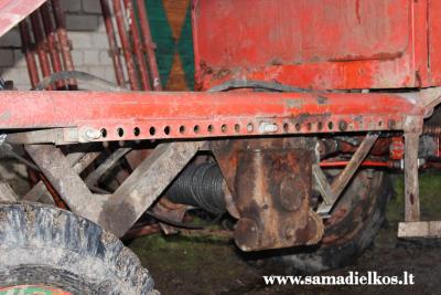 Prieky buldozeris ten jam uzmontuotas yra? Ar kokia atrama traukiant medi nuleist? Kokio ilgio trosas susuktas?